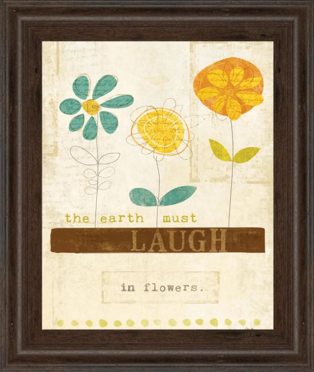 A motivational piece that reads The earth must laugh in flowers. This piece is designed to evoke positive feelings. This exquisite piece effortlessly blends vibrant floral motifs with sophisticated aesthetics, making it a delightful addition to any interior. Mollie B's mastery of colors and design truly shines in this enchanting artwork.Read More