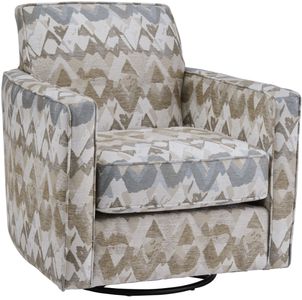 This swivel glider chair provides smooth motion and comfortable seating with its soft fabric and supportive cushions. The sand and pep sand tones blend effortlessly with various interiors, offering a cozy and durable piece perfect for relaxing in any room.Read More