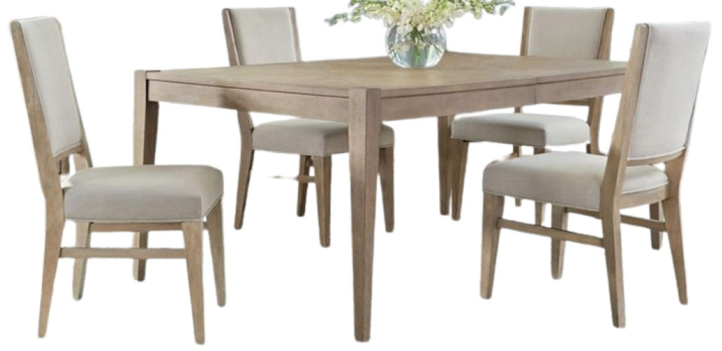Includes the rectangular leg table and 4 upholstered side chairs