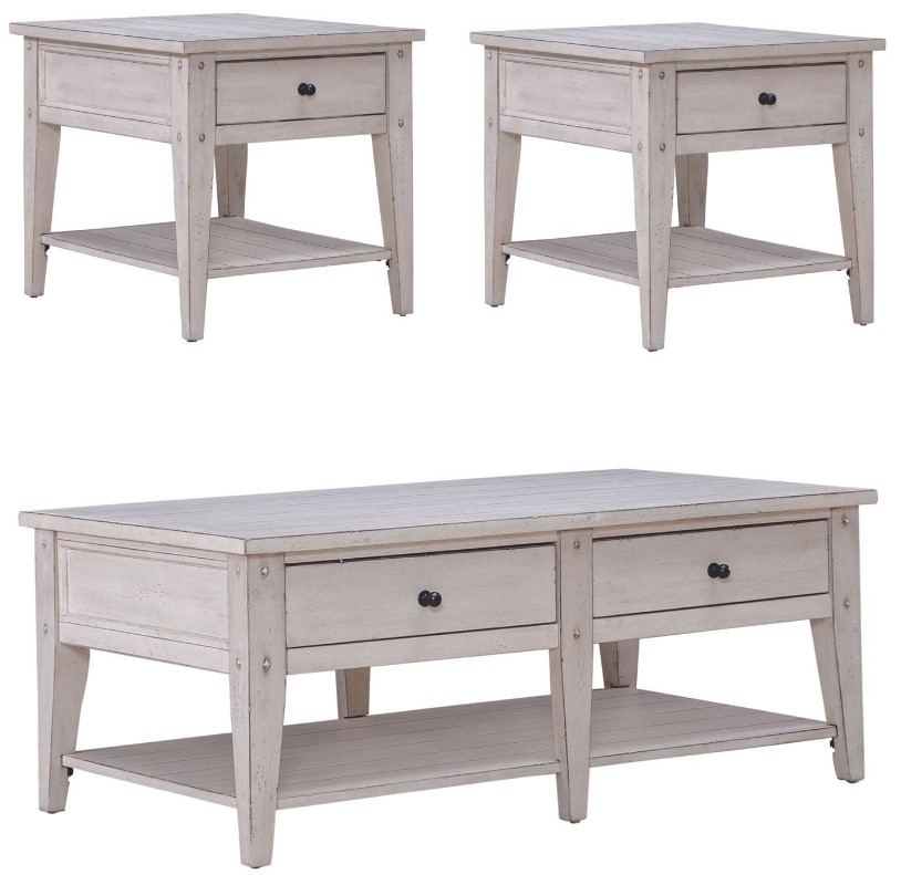 A fusion of timeless craftsmanship and modern convenience, the Lake House 3 piece set is meticulously crafted using Poplar solids and Oak veneers and features a Weathered White finish. The highlight of these tables are the planked tops and bottom shelf.Read More